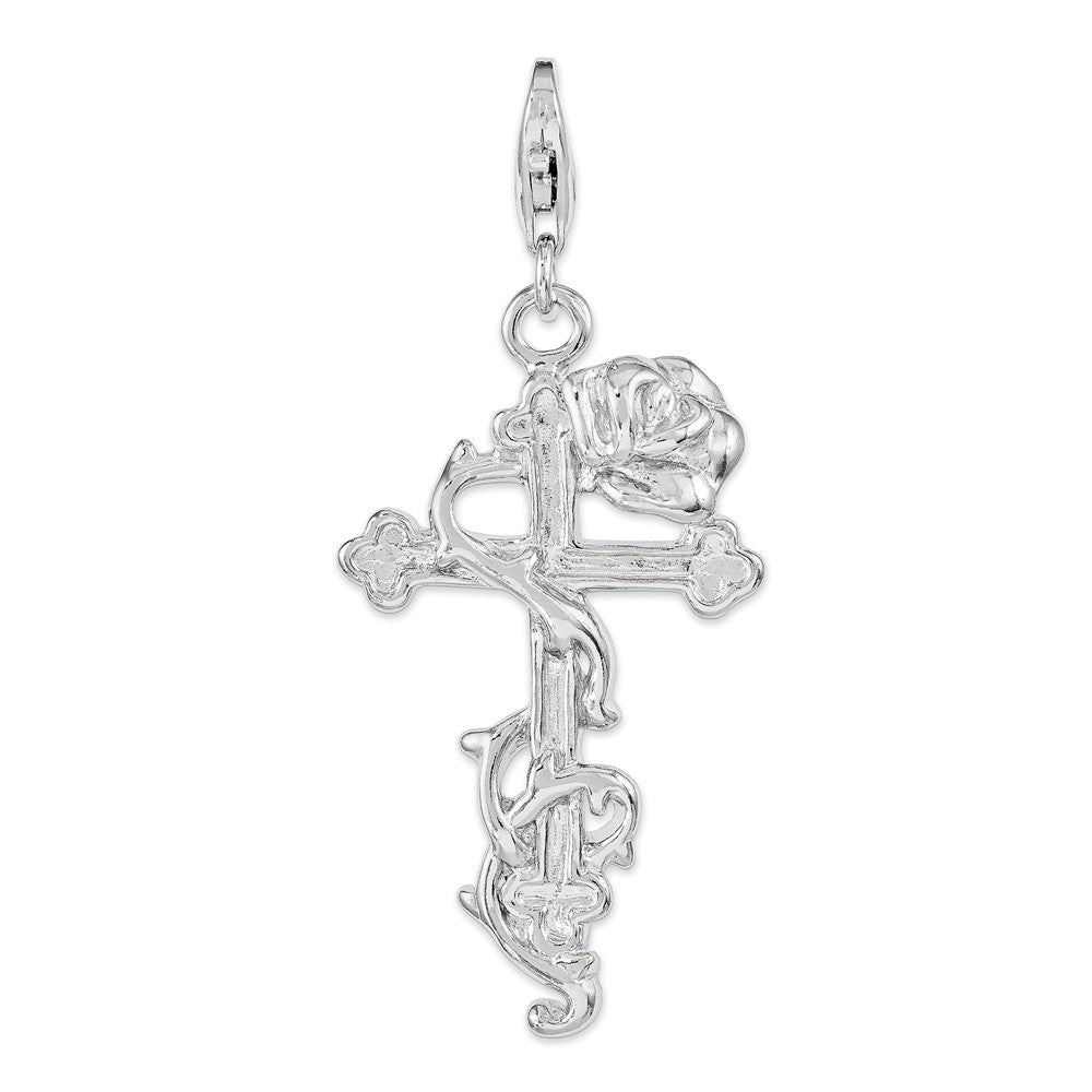 Click-on Cross W/ Climbing Rose Charm in Sterling Silver