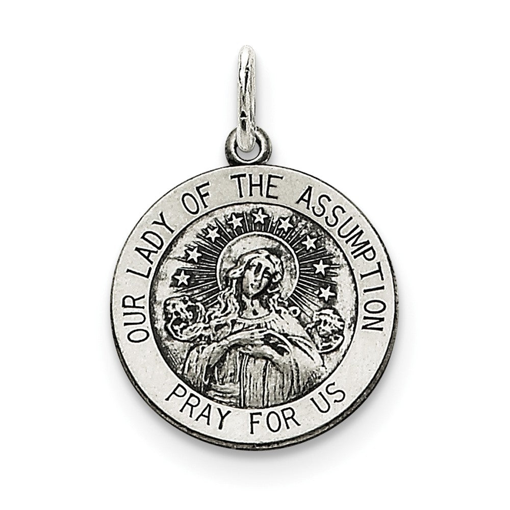 Sterling Silver Antiqued Our Lady of the Assumption Medal, Charm hide-image
