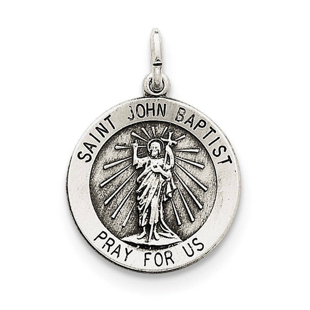 Antiqued Saint John the Baptist Medal, Pendants and Charm in Sterling Silver