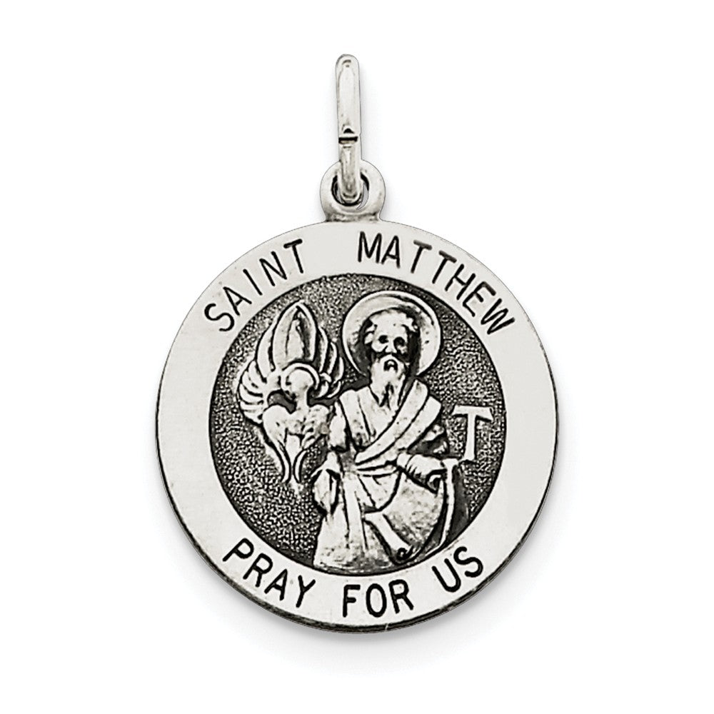 Sterling Silver Antiqued Saint Matthew Medal, Adorable Charm hide-image