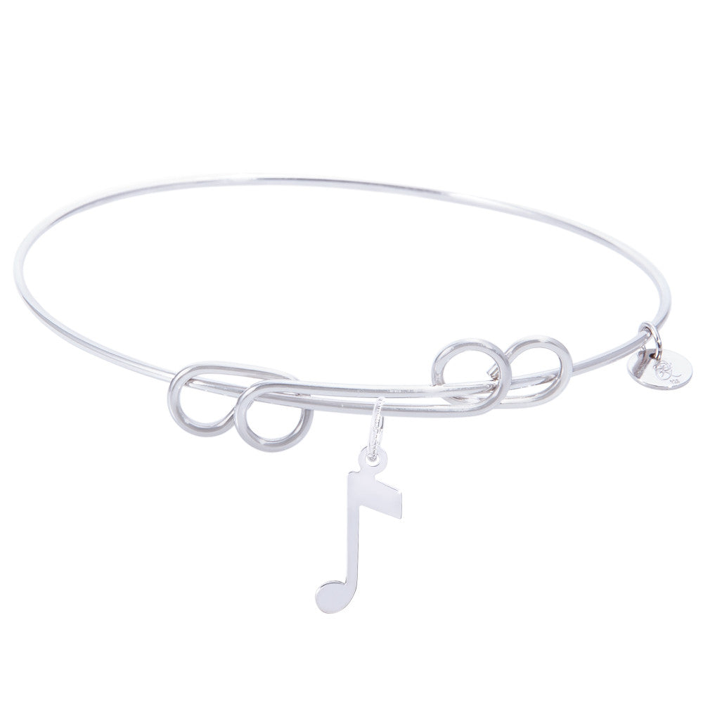 Create your own expression with our Carefree Bangle Bracelet made from Sterling Silver. Each bracelet is rhodium plated to prevent tarnishing and give it a lasting brilliant finish. The Music Note Accent Charm will strike a chord with music lovers. Perfect for those who play an instrument, sing, dance or enjoy tunes on a mobile device.