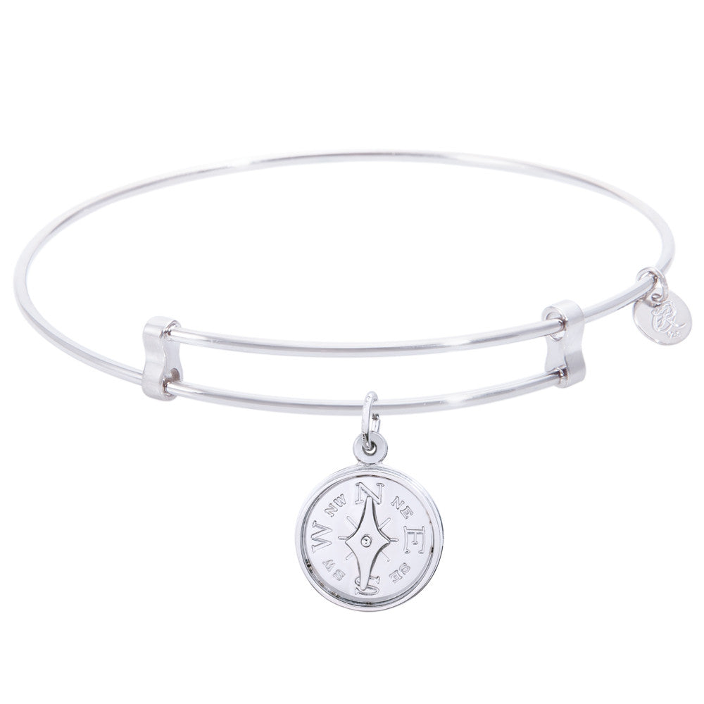 Sterling Silver Confident Bangle Bracelet With Compass Charm