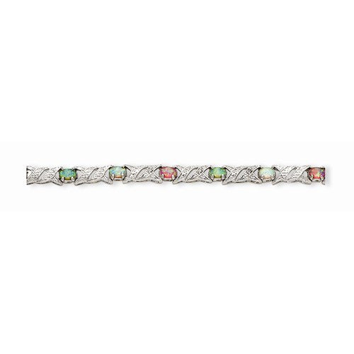 Sterling Silver Created Colored Opal and Diamond Bracelet