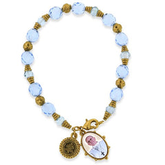 Gold-Tone with Blue Beads Pope Francis I Rosary Bracelet