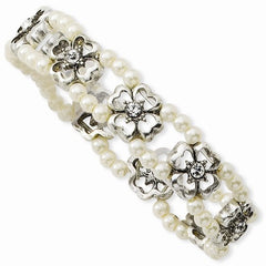 Silver-tone Crystal Stones & Acrylic Beads Stretch Bracelet
