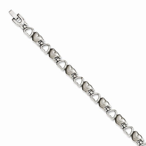 Stainless Steel Brushed & Polished Hearts Bracelet