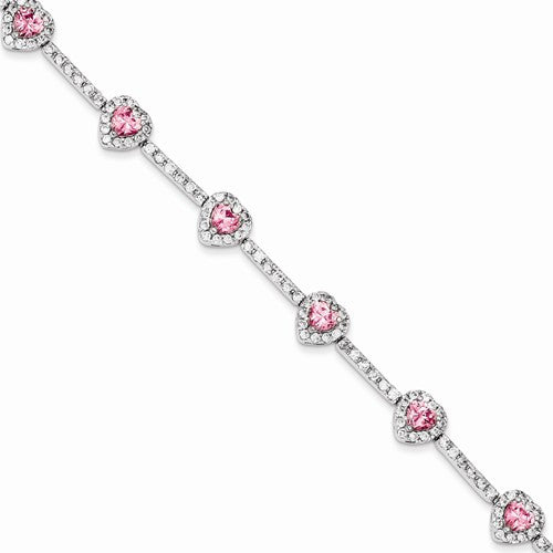Sterling Silver Pink and Clear Cz Heart Bracelet