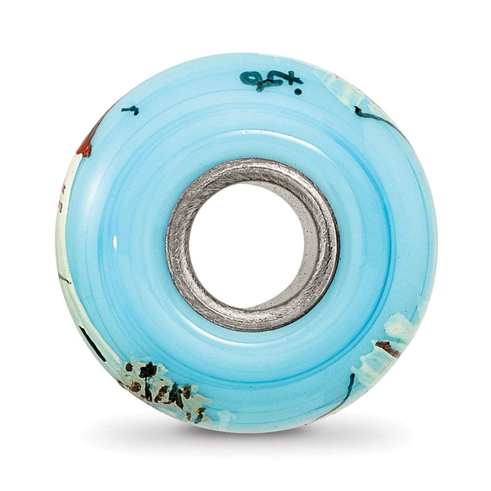 Blue Hand Painted Sailboats Glass Charm Bead in Sterling Silver