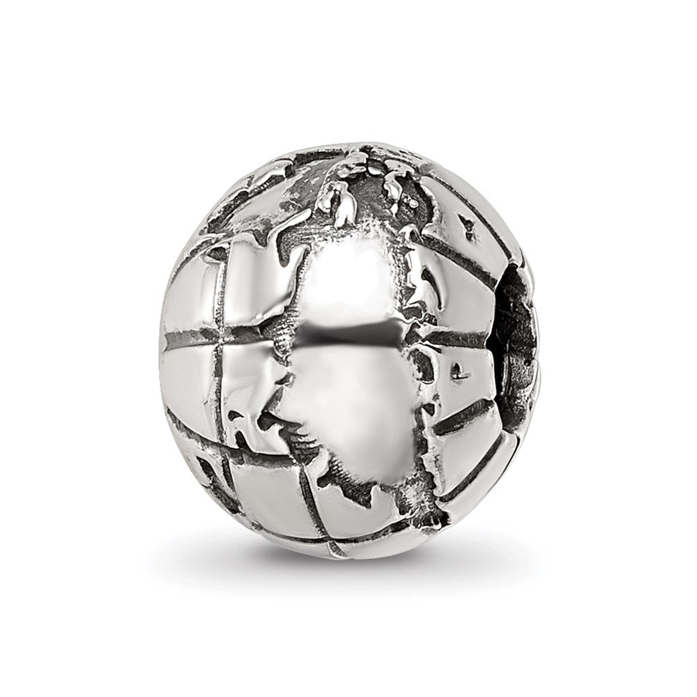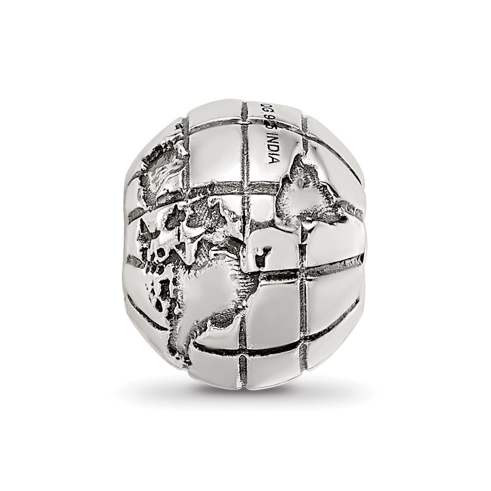 Antiqued Globe Pattern Charm Bead in Sterling Silver
