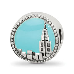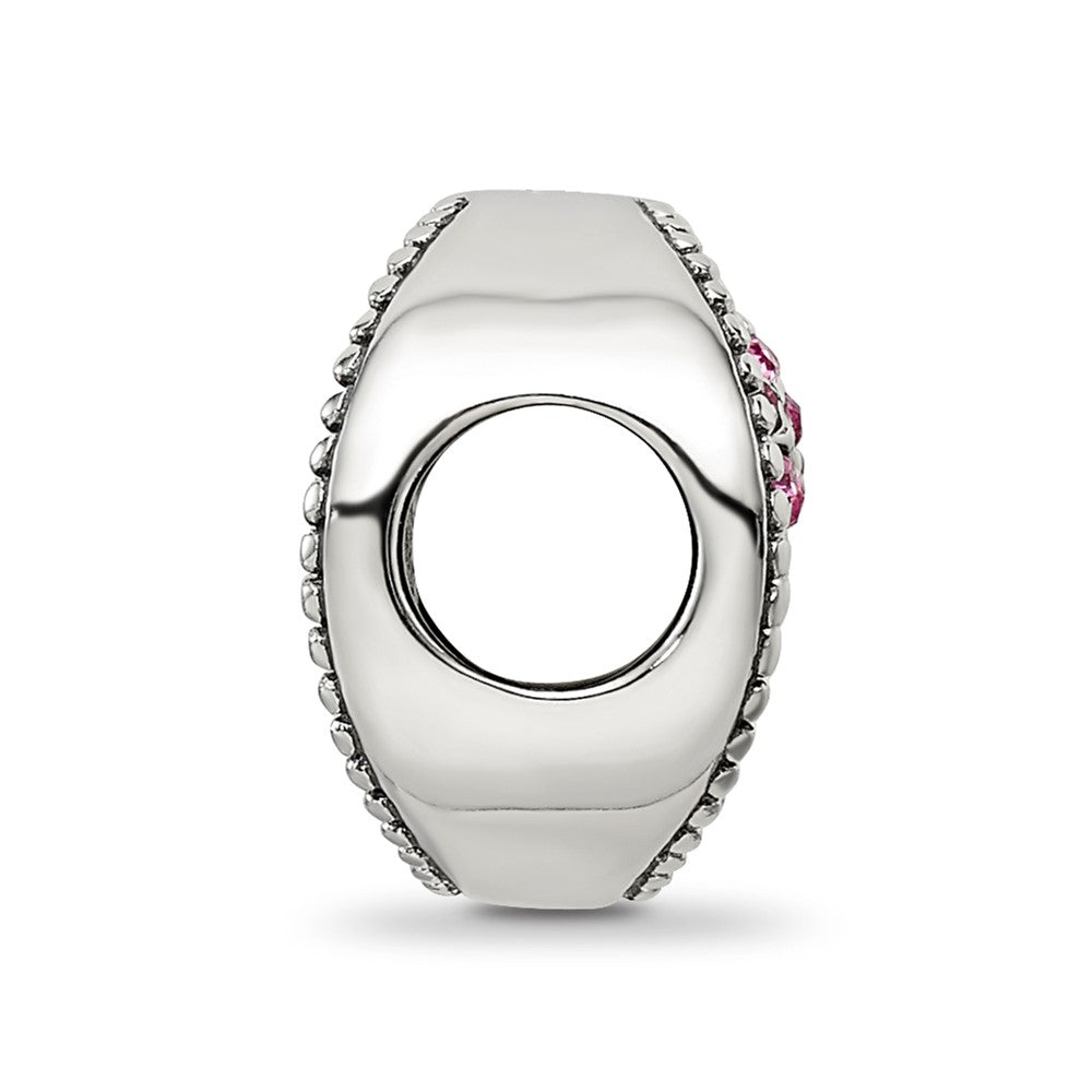Enameled Ny Pink Swarovski Heart Circle Charm Bead in Sterling Silver