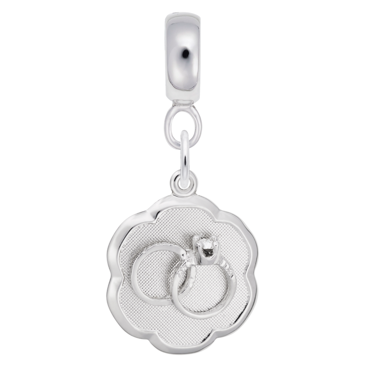 Show your engagement to your significant other with this engravable Sterling Silver flat back wedding ring disc charm dangle bead! Add it to your charm dangle bead bracelet today!