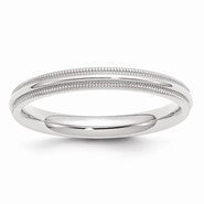 14k White Gold 3mm Milgrain Comfort Fit Wedding Band Ring