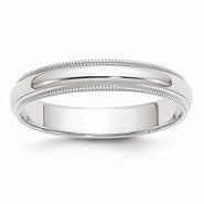 14k White Gold 4mm Milgrain Wedding Band Ring