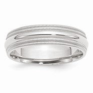 14k White Gold 6mm Double Milgrain Comfort Fit Wedding Band Ring