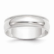 14k White Gold 6mm Lightweight Milgrain Half Round Wedding Band Ring