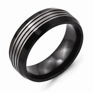 Black Titanium 8mm Polished & Brushed Beveled Edge Wedding Band Ring
