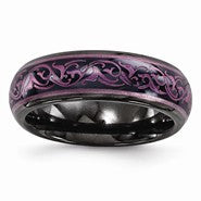 Black Titanium Domed Anodized Purple 6mm Wedding Band Ring