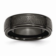 Black Titanium Hammered Ridged Edge 7mm Brushed Wedding Band Ring