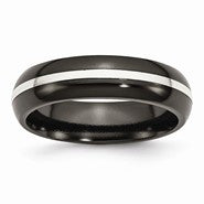 Black Titanium & Sterling Silver Inlay 6mm Polished Wedding Band Ring