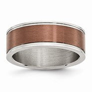 Stainless Steel 8mm Chocolate IP-plated Polished & Brushed Wedding Band Ring