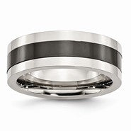 Stainless Steel Base with Polished Black Ceramic Center Wedding Band Ring