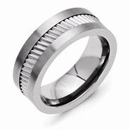 Stainless Steel Base with Sawtooth Accent 8mm Polished Flat Wedding Band Ring