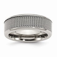 Stainless Steel Base with Steel Mesh Center 8mm Wedding Band Ring