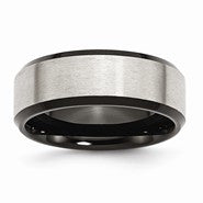 Stainless Steel Beveled Edge Black IP-plated 8mm Brushed Wedding Band Ring