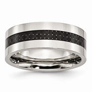 Stainless Steel Black Carbon Fiber Flat 8mm Polished Wedding Band Ring