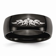 Stainless Steel Black IP-plated Fancy Scroll Design 8mm Wedding Band Ring