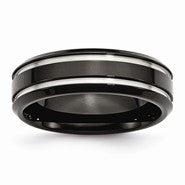 Stainless Steel Black IP-plated Grooved and Polished 7mm Wedding Band Ring