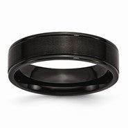 Stainless Steel Black IP-plated Grooved Polished & Brushed 6mm Wedding Band Ring