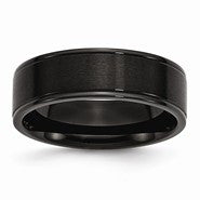 Stainless Steel Black IP-plated Grooved Polished & Brushed 7mm Wedding Band Ring