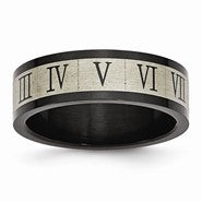 Stainless Steel Brushed Black IP-plated Roman Numerals Wedding Band Ring