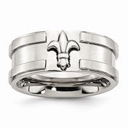 Stainless Steel Fleur de lis 10mm Polished & Brushed Wedding Band Ring