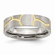 Stainless Steel Grooved Yellow IP-plated Womens 6mm Brushed Wedding Band Ring
