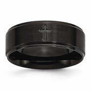 Stainless Steel Polished & Brushed Cross Cut-Out Black IP-plated 8mm Wedding Band Ring