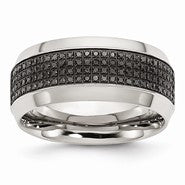 Stainless Steel Polished Diamond 9.75mm Wedding Band Ring