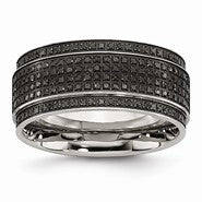 Stainless Steel Polished Diamond Ridged Edge 10mm Wedding Band Ring