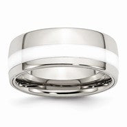 Stainless Steel Polished White Ceramic Inlay 9mm Wedding Band Ring