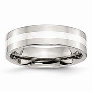 Stainless Steel Sterling Silver Inlay Flat 6mm Polished Wedding Band Ring