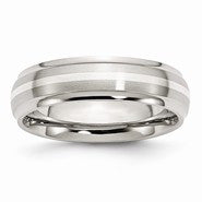Stainless Steel Sterling Silver Inlay Ridged Edge 6mm Brushed and Polished, Size 6.5, Ring