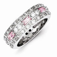 Sterling Silver Pink & Clear CZ Wedding Band Ring