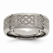 Titanium Beveled Edge 8mm Laser Design Polished & Brushed Wedding Band Ring