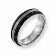 Titanium Black Plated Grooved 6mm Brushed and Polished Wedding Band Ring