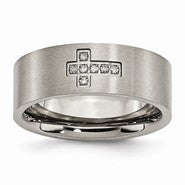 Titanium Brushed Diamond Cross Flat Wedding Band Ring