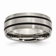 Titanium Enameled Grooved 8mm Satin Wedding Band Ring
