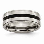 Titanium Enameled Ridged Edge 8mm Polished Wedding Band Ring