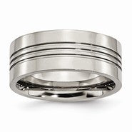 Titanium Grooved 9mm Polished Wedding Band Ring