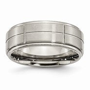 Titanium Grooved Ridged Edge 8mm Satin and Polished Wedding Band Ring